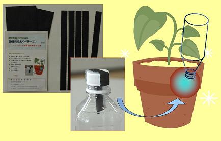 ペットボトルに【SIMERUS水やりテープ】を取り付けると、本当に簡単にペットボトル型自動水やり器ができます。普通の植木鉢から野菜用大型プランター(庭や野菜畑でも使えます)までちゃんと乾湿にあわせて自動給水してくれるすぐれものです。※ジャガイモ そのペットボトルをさらに使いやすくするためのコツを紹介します。ペットボトルを土に挿したとき、ジフィポットを使うと、倒れず、いつも簡単に設置することができます。これ結構便利です。詳しい情報は、緑水学舎HP (http://www.simerus-rg.com/PETset.html#tape2)をご覧下さい。