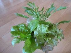 ずいぶんと長い間ブログを書かなかったと反省してます。夏野菜が終わってから、秋野菜も順調に育っているところでしょうか?我が家の菜園では、発芽したての新芽をヨトウムシにすべて食べられてしまったので、再度、ヨトウムシに気をつけながら、新芽を育てているところです。ヨトウムシには、庭に置いているプランターの新芽をいつも食べ尽くされて困っていたのですが、今回ベランダでも発見したのでショックでした必死になって、見つけ出しましたよ~ 4号鉢(12cm)にガーデンレタス2種類とサラダ水菜を入れて、【SIMERUS水やりテープ】をセットした120ml位のペットボトル(カゴメのラブレ)を挿してあります。最近【SIMERUS】の説明をするときに、小さいので持って行くのですが、かわいくて実用的となかなか好評です。 一人暮らしの方などいかがですか?ちょこっとサラダを食べたい時に、すぐ収穫して食べることが出来るし、完全無農薬です。水やりも【SIMERUS水やりテープ】を使っているので簡単。ペットボトルの水がなくなるまでほっておいて大丈夫。下に水が溜まることはほとんどないので、きれいです。