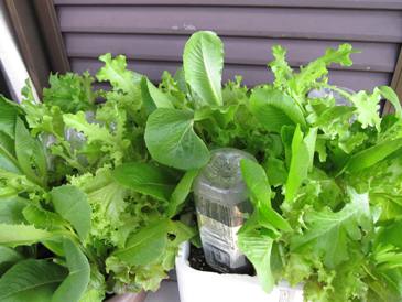 ガーデンレタスが元気に育ってます。次から次へと大きくなって、毎日食べるのに追われています8月末頃少し涼しくなっていたのに、9月になってからは残暑が厳しく、ペットボトルの水の減り方も真夏並になっていたのですが、ここ数日少し気温が下がってきて水の減り具合が変わりました。※この水の減り方が変わるっていうのは、【SIMERUS水やりテープ】が土の乾湿にあわせて、ちゃんと水分供給しているからです! テープ1枚(約50円)で水分センサーの役目と給水器の役目をしているわけですが、これをコンピュータで水分関知とタイマーによる給水調整をするような製品で探すと2万円位になります。(給水は分岐できても、水分センサーは1ヶ所だけですよ。) 土の乾湿は、同じプランターでも場所によってかなり違うし、植えてある植物によっても違います。写真のガーデンレタスでは、小さい方のプランターは真ん中にペットボトルを1つですが、発砲スチロールのプランターには、離して2つペットボトルを入れています。この2つのペットボトルの水を同時にセットしても、日の当たり具合、風の向き、植物の混み具合等々で、水の減り方は違います。 ※「SIMERUS水やりテープとガーデンレタスの種」プレゼントは、15日0時まで!ご応募お待ちしています