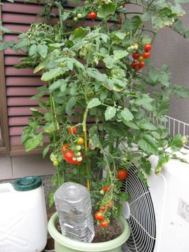 5月3日ペットボトルにフィルムを取り付けなければ・・・ 5月10日アルミ箔は虫除けになるとかいうのでフィルムに採用。5月19日5月22日花が咲きました。5月30日大きくなってきたので給水量も増えました。6月6日2Lのペットボトルで1週間は保たなくなりました。 5月3日に植えたミニトマトの苗がこんなに大きくなりました。品種は、タキイの「うま旨ミニトマト」。去年もこれを育て食べてみたところ、皮が柔らかくてとても食べやすかったので、今年も育てることにしました水やりは、【SIMERUS水やりテープ】をフタに取り付けたペットボトルのみ。ペットボトルが空になったら、水を入れるだけのお手軽自動給水。朝晩たっぷり水をやる必要はなく、植物にとって最適な水分環境を保つ上に、節水、下からの汚水もほとんどでないので(といっても雨がたっぷり降れば、普通に下から水も出ますが、 そんなときはペットボトルの水や減りません。)ということで、肥料の無駄遣いも抑えられますね。※下から流れ出るまで、たっぷり水をやってたら、肥料も何もかも流れ出ちゃうわけで、園芸講座等では「流れ出るので、しっかり追肥をして下さい。」って言ってますよね。 でも、流れ出た汚水はどこへ行くのでしょう?地面だったら、河川や地下水へ?ベランダだったら、いずれ下水処理場へ? 有機肥料だったらホントに大丈夫?ちょっと考えてみませんか?参考資料