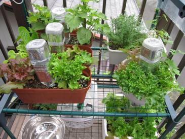 マンションのベランダに菜園を作り始めて2ヶ月ちょっと、すでにイチゴも収穫し、サラダ類も順調に食してきました。ゴールデンウィーク中ハーブ類を増やしたので、現在はこんな感じ。【SIMERUSフロート】と【SIMERUS水やりテープ】で自動給水してます。ベランダの床を鉢からの汚水で汚すことはありません。 当然、ジョウロなどによる階下等への散水被害もありません!! ペットボトルには、アルミテープが貼り付けてあります。レンズ効果による火災の防止用フィルムにもなるし、アブラムシが嫌うという説もあるので、やってみました 無農薬で作るってことは、虫との戦いでもあるんですよね。でも、このベランダは、11階にあるせいかどうかわからないのですが、意外とアブラムシがついてないんです。11階まで虫って飛んで来ない?????