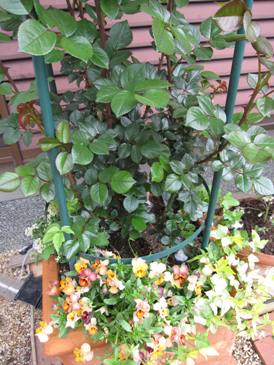 バラとクレマティスをオベリスク仕立てにしたくて、去年の12月に"デライト”というつるバラを植えました。 シュートが次々と伸び、先日心斎橋大丸のイングリッシュガーデンショウで入手したクレマティスを植えるついでに【SIMERUSフロート】で自動給水するようにしました。※【SIMERUS水やりテープ】での給水でも問題はなかったのですが、ペットボトルが見えるのと、 ペットボトルの水を替えるとき、バラのとげに気をつけないと痛い思いをするので・・・鉢の大きさが50cm×50cmなので、【SIMERUSフロート】をとりあえず3個セットしましたが、南向きで、夏はガンガン日が当たるので、様子を見て【SIMERUSフロート】を増やすかどうか考えようと思います。 どんな風になるか、とても楽しみです