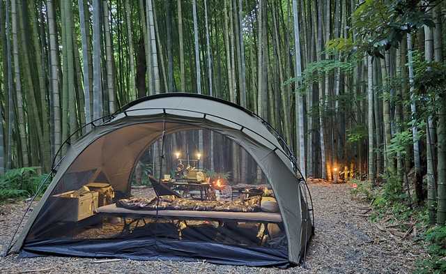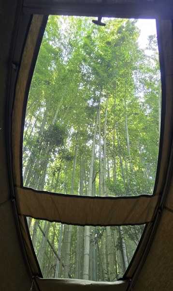 竹林が風を防いでくれるので、ペグもガイロープも張っていませんでしたが大丈夫でした