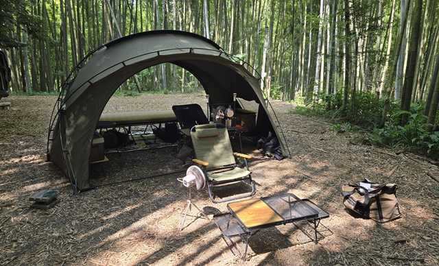 竹林の日影サイトなので外気温29℃(天気予報では32℃)と幾分涼しいですが、それでも