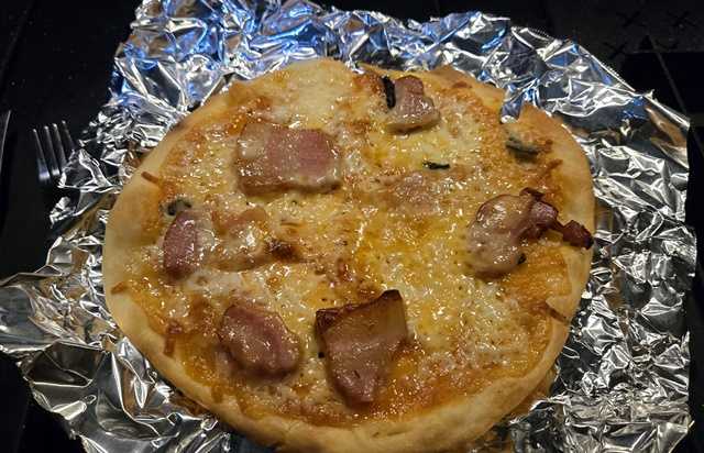 夕食は定番のピザ焼き。じっくり焼いたからパリパリで美味しかった
