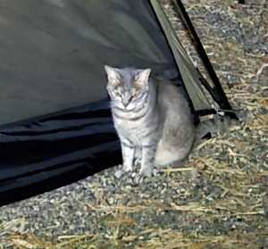 この猫は人懐っこい子で夜ご飯ねだりにテントまで遊びに来て長い間ニャーニャー鳴いていました