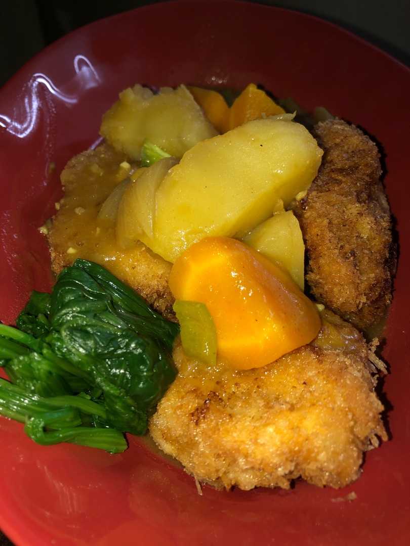 カツカレーを作りました。 また、シャバシャバです。 昨日は赤飯だったので、 ご飯は今から炊きます。