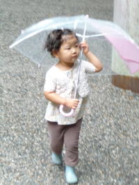 mei 2y6m25d. ai 0y2m13d.雨だったので一日おうち。絵本が大好きなmeiは一日家に居てもそう苦ではなさそう。「おつかいいこか(^^)」とか「傘さす?」とか言ってるけど。寝る前、なかなかズボンを履かないmeiに「カミナリさんがおへそ取りにくるよ!」と言ったらかなりビビッてあわててズボン履いてた(^^;カワイイわ♪