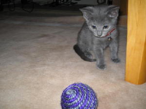 無口なロシアンブルーなのに、ホントよく鳴きます。