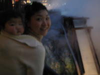 ライトアップされた湯畑は湯気があがって幻想的でした。