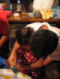 行った早々むすめにお菓子の詰め合わせと夜光ブレスレットをいただき、