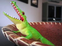泊まったホテルのお風呂で栓をくわえていたおもちゃのワニさん。
