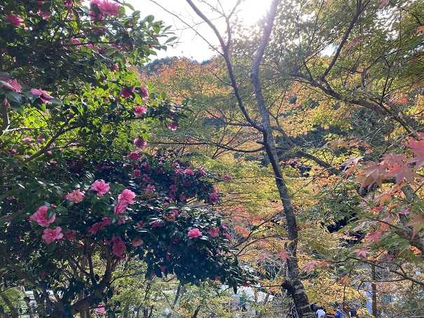 11/7に訪れた時よりも紅葉が赤くなっていて、更につわぶきやさざんかが咲いていて綺麗でした。