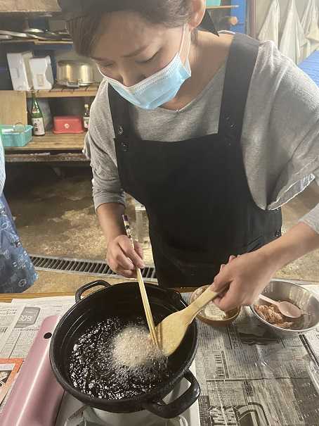 焼き上がりを待つ間、予定外に桜えびのかき揚げも教えていただきました。