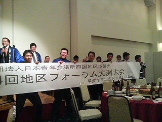 昨日行われました、創立記念日例会及び懇親会出席していただきましたメンバーの皆様、ありがとうございました。大勢の先輩方にもご出席いただき、八幡浜青年会議所の誕生日を盛大にお祝いすることができたと思います。宮本洋副理事長、水内委員長率いる人間力開発委員会の皆様設営から懇親会まで本当にお疲れ様でした。(しかし、ちだ子(長島!?)はすごかった!!)人間力開発委員会は年明けからフル回転ですごく大変だとは思いますが多少のミスはなんのその!?委員長を中心にがんばっていただければと思います。これから、公式訪問例会が始まり、LOM事業もどんどんはいってきます。皆様お忙しいとは思いますが、われわれの想いを結集させわが地域(まち)のため、子供達のために共にがんばっていきましょう!では、では。