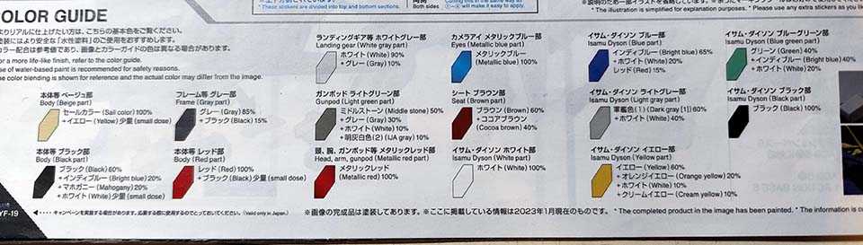 少しずつ制作していたハセガワ版YF-19が完成。家はエアコンのない環境なので真夏は制作ペースが落ちてしまうのが難点で、組み立てられるタイミングで少しずつ組み立ててた。バンダイ版はプラス・7・デルタと新し目の作品が立体化し、組みやすいのか全然再販がかからずなかなか入手不可。バンダイ以外のブランドはバトロイドの選択肢が少なすぎる。VF-1かそのバリエーションがメインなんで。ハセガワからYF-19のバトロイドが出るって聞いたときは予約しちゃいましたよ。ハセガワ版YF-19バトロイドはVF-0フェニックス(バトロイド)以来のリリースだったんだとか<バンダイ版との違い>変形バンダイ版:変形可能(ただし差し替え式)ハセガワ版:形状固定(ファイターは別に出ている(ノーマル/Fastパック+フォールドブースター付きの2種類が出てる)シール・デカールバンダイ版:テトロンシールよりは薄いネーマーシールを採用。水転写デカールは別売り。ハセガワ版:水転写デカールがデフォルト。VFのプラモデルでシールを採用しているのはバンダイとアオシマのみオプションバンダイ版:変形用パーツ、汎用スタンド用補助パーツ付きハセガワ版:バンダイ版にはないFASTパック・スタンド付き共通してピンポイントバリアパンチのエフェクト付き バンダイ版とハセガワ版のカラーレシピ。バンダイ版はMrカラー/水性ホビーカラーの番号が書いてない。バンダイ版は塗装前提じゃないからな。(塗装派のための配慮がしてある構造とはいえ)バンダイ版とハセガワ版はメインの成形色が異なり、ハセガワ版は薄め。カラーレシピもメインのカラーはバンダイはセイルカラー、ハセガワはレドームを採用。メインカラーはバンダイ版との比較のために塗ってません。バンダイ版とハセガワ版のフェイス部分の塗装指示。フェイスは全部シルバーで塗るよう指示があったが、バンダイ版と同じフェイスのカラーに塗装。丁度黒とスカイブルーの塗料があったので。(バンダイ版はシールを貼るように指示されているが塗装派のためにフェイスにはモールドも施されている)ハセガワ版塗装指示書に書いてある「B」の文字はバンダイ版では別パーツになっている箇所バンダイ版では別パーツになっている所はハセガワだとデカールで補うが塗装のほうがいいと思って塗装に。写真は頭部アップ。フェイスのライン、はみ出ないように頑張ったんですが、はみ出てしまった。マスキングをちゃんとしておけば・・バンダイ版との比較。バンダイ版はバトロイド時のプロポーションは設定画に近く、ハセガワ版はファイターから逆算して設計しているって感じ。バンダイ版同様意外と脱落しやすい箇所がある。スナップフィットと言っても落ちそうな所は引っ付けました。バンダイ版YF-19レビュー