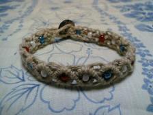 今日は午前中、小学校の音楽会を見てきました。やっぱりかわいいな~1年生。音楽物語で歌あり セリフがあり 楽器ありでした。そして午後は娘とお買い物に・・・。娘の服・・・最近よく買わされます。今日はハーフパンツにTシャツ、ネクタイつきのシャツ・・・そして運動靴。普段履きの靴ですけどね。私もバッグ、買ってきました。ちょうどいい大きさのがなくて探してたんですが大きさ的にもOKでお値段もお手ごろ・・というものを見つけたので買ってきました。あとね、また作りたいものがあるので手芸やさんにも行ってきました。前に作ったものもUPしてなかったですね。エイトの神戸コンにつけていきました。ヘンプで作ったブレスです。これも一緒に作ってみました。なんだかどちらの写真も暗いですね。本には<ミサンガ>って書いてありましたが・・・。また次に作ったものは後日UPしますね。そしてDVDも買ってきました。今、HDDにたまりに溜まっています。エイトくんたちが・・・。今月と来月はエイトメンのドラマがありますからね。ちゃんと予備を置いておかないと!特価だったのもあるんですけどね・・・(笑)我が家の娘、また『7人のオカン』見てます。一人で爆笑しています。この娘、<ほんじゃに!>のここだけ残して『7人のオカン』だけのDVDを作ろうとしているようです。『7人のオカン』だけのDVDってどんな感じなんだろう・・・今日の<聞くジャニ>は亮ちゃんとヨコ。仕切りは亮ちゃんですよね。んん??もしかしてグダグダかな?(笑)ちょっと心配・・・。でも相手がヨコなので大丈夫かな~。(って、どっちやねん!)そして<男前をめざせ>は誰なんでしょう。今夜もラジオが楽しみです。