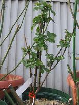 今日はホームセンターへ赤玉土小粒と大玉を買いに行ってきました暮れに行ったときには混んでいたホームセンターも今日はすいていました園芸コーナーも自分以外お年寄りが一人いるだけでしたここではあの安く買ったイングリッシュローズがあったところなのでまだあるのかなと少し覗いてみましたするとまだ10苗位ありました 中でもアブラハム・ダービーの苗がとてもよく育っていました今日の予定は赤玉土を買うことなのでぐっと我慢してお別れしました赤玉土を買って家に帰る途中に車のフロントガラスに雨がポツポツと少し見え始めましたまだそんなにはひどくならないだろうと家についてから植え替えを始めました一つ目のダブル・デライトを植え替えていると少し雨脚が強くなってきましたがまだもう少しいいだろうと今度はパパ・メイアンを植え替えましたパパ・メイアンの根を洗ってみると小さな根頭がん腫病のようなものがありました根からとっておきましたが パパ・メイアンは少し注意が要るようです雨が降っているので植え替えをやめようと思いましたが以前植えてあった鉢土がもったいないのでエンゼルストランペットの土に使うことにしましたエンゼルストランペットはふた苗をひとつのプランターに植えてあったので まずは真ん中で切り離して根をつめて鉢にひとつずつ植え替えましたついでに先月見た趣味の園芸をまねて緩衝材を巻いておきましたこの後雨が本降りになってきたので家の中に入りました明日はまた植え替えができるかなホワイトクリスマスの蕾がだんだんと開いてきました人気blogランキングへ参加しています クリックしてくださいますとランクが上がりますのでとてもうれしいです一日一回ぜひご協力をお願いします押してくださっている方 ありがとうございます★ウィークスローズ★★憧れのイングリッシュローズ苗1ダース福袋 福袋特別価格\30,000送料無料! 10セット限りの販売!21種類の中からお好きな12種類をお選び下さい。★★日本初 イングリッシュローズ スタンダード仕立て★★アリスガーデン イングリッシュローズを当店価格3200円を2800円に 当店価格4000円を3500円に価格訂正は ご注文確認のメールで行います★★イングの森 涙涙の 移転セール バラ会場★★★★兼弥スリット鉢 30cm モスグリーン★★★秀じいの堆肥★★★じょうないさんのブルーミングヤード★★★ザ・ローズショップ イングリッシュローズの予約受付中★★★ガーデナー達の花物語 大苗販売中★★★バラの家 大苗販売中★★★イングの森 魅惑のバラ園開催中★★★e-フラワー楽天市場店 バラ苗予約受付中★★★悠彩堂 バイオゴールドなどバラのガーデニング用品など販売しています