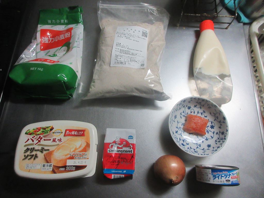 本日残念ながら連休最終日 ま二連休なんて・・・あっと・・・いう間に終わっちゃうのね(^^; 明日から魔の五連勤が待ち受けていますが何とか乗り切るためにこれらの食材達で Let's cooking! まずは ドライイースト1gと砂糖7.5gをぬるま湯85gに入れ 予備発酵イースト作り お次はボウルに 強力粉75g、全粒粉50g、塩 予備発酵イーストを流し入れ 混ぜ混ぜ 混ぜ混ぜし粉っぽい所が無くなったら 台に移し・・・捏ね捏ね6分 表面がつるんとしたら 一次発酵開始・終了後 生地君が成長してくれたので 台に移し・・・三分割にし 濡れ布巾を掛けベンチタイム10分後 生地を成形し 二次発酵開始・終了後 生地に小麦粉を振り掛け切込みを入れて 200℃で予熱したオーブンで180℃で15分焼き焼きの間に ツナマヨ作りに マヨ明太とバター風明太作り で ファイヤ~~!!! まずは 麒麟淡麗ダブルプラチナで乾杯!連休最終日の午前中早くから自宅で飲む麒麟淡麗プラチナダブルマジ、格別ですね♪ 出来上がったおつまみ達は これ 「ツナマヨバケット風サンド」と 「明太フランス風」 そのお味は うん、うん うん、うん どちらも・・・メチャ美味しいんだな♪ だ・か・ら 「まる」の燗飲み始めちゃうんだな(^^; では、では