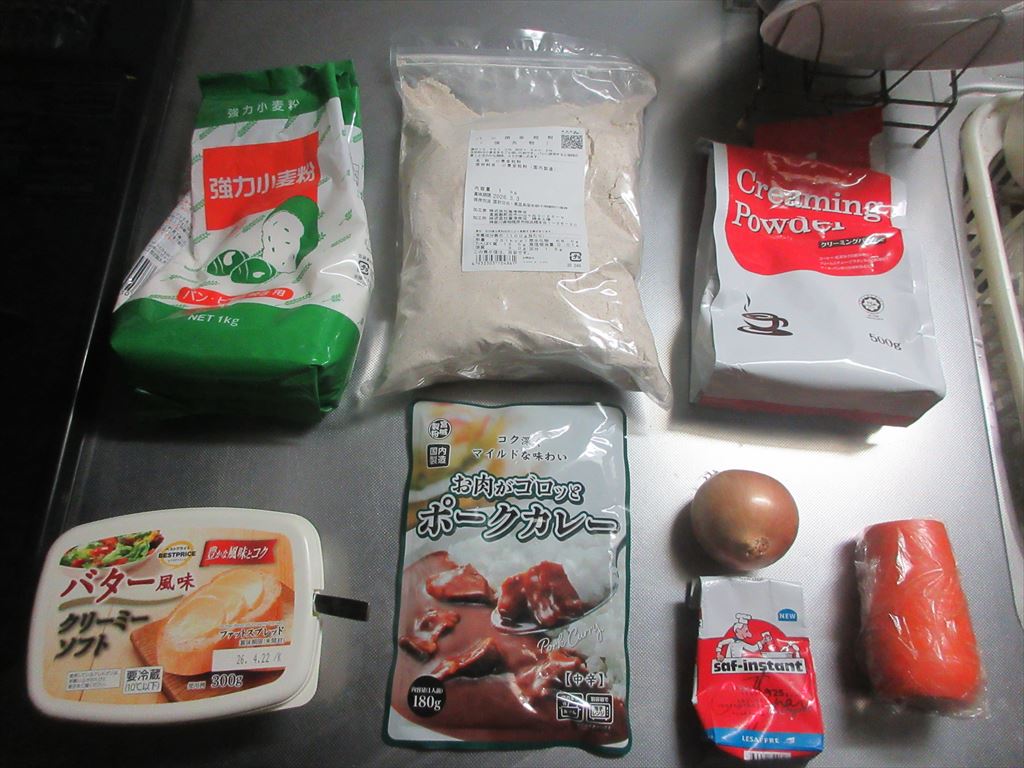 早いもので本日11月の一日 2025年も残り二ヶ月 まだまだやり残した事があるので一つ一つ消化していきましょうかね・・・ 腹が減っては戦は出来ずって事でこれらの食材達で Let's cooking! まずは ドライイースト2.5gと砂糖5gをぬるま湯100gに入れ 予備発酵イースト作り お次はタッパに 強力粉200g、全粒粉50g、塩、クリーミーパウダー、ぬるま湯 予備発酵イーストを流し入れ カードで混ぜ混ぜ 混ぜ混ぜし粉っぽい所が無くなったら 台に移し・・・捏ね捏ね6分 バター風を加え・・・捏ね捏ね6分 表面がつるんとしたら 一次発酵開始・終了後 生地君が成長してくれたので 台に移し・・・丸め直し 濡れ布巾を掛けベンチタイム10分後 生地を成形し型に入れ 二次発酵開始・終了後 再び生地君が成長してくれたので 220℃で予熱したオーブンで200℃27分焼き焼き すると いま一歩・・・ですかね・・・ これを冷ましている間に 玉葱ちゃんと人参君をカットしレンチン でラウンドパンをカットし中をくり抜きポークカレーを注ぎそしてチーズを乗せて ファイヤ~~!!!! まずは 麒麟淡麗プラチナダブルで乾杯! 連休初日の午前中早くから自宅で飲む麒麟淡麗プラチナダブルマジ、格別ですね♪ 出来上がったおつまみは これ 「チーズポークカレーパン」 そのお味は うん、うんそのまま食べても・・・美味しいのですが・・・くり抜いたパンと・・・頂くと 更に・・・旨いんだな♪ だ・か・ら 「まる」の燗飲み始めちゃうんだな(^^; では、では