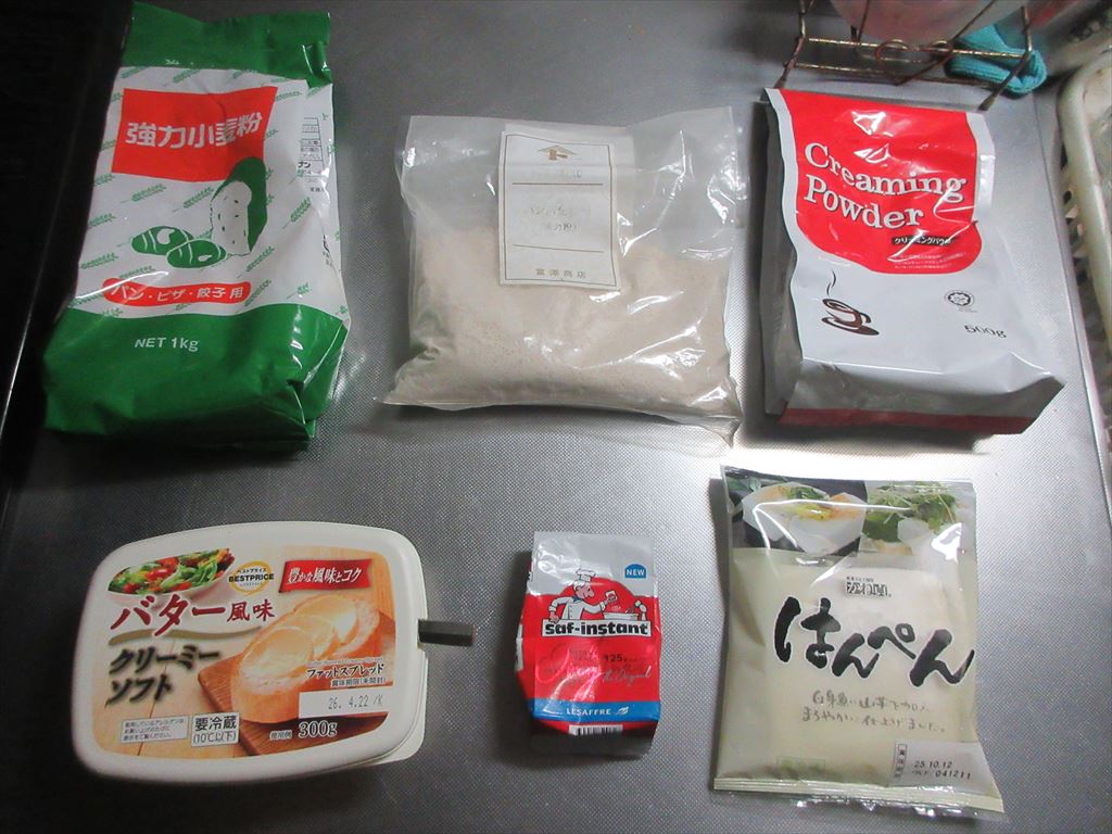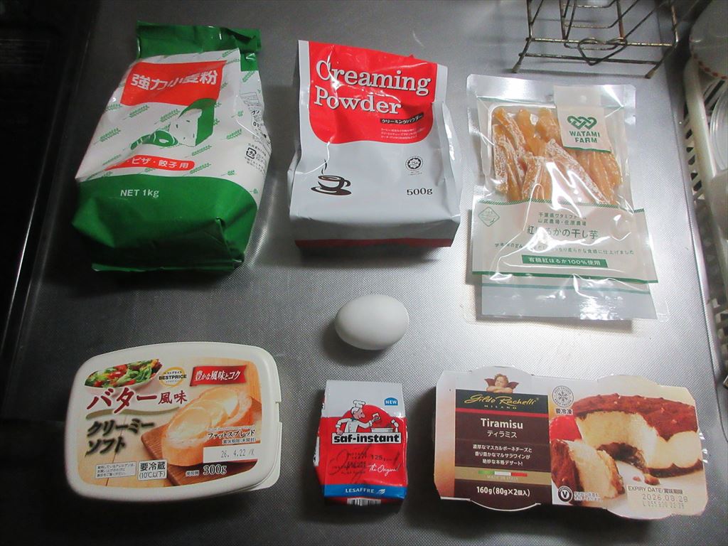 早いもので本日10月最後の・・・お休み もういくつ寝ると・・・11月2025年も残り二ヶ月チョイ・・・ や~ね~ って事でこれらの食材達で Let's cooking! まずは ドライイースト1gと砂糖7.5gをぬるま湯58.5gに入れ 予備発酵イースト作り お次はボウルに 強力粉100g、クリーミーパウダー、塩 予備発酵イーストを流し入れ 混ぜ混ぜ 混ぜ混ぜし粉っぽい所が無くなったら 台に移し・・・バター風を加え・・・捏ね捏ね6分 表面がつるんとしたら 一次発酵開始・終了後 生地君が成長してくれたので 台に移し・・・三分割にし 濡れ布巾を掛けベンチタイム10分後 生地を成形し 二次発酵開始後 干し芋ちゃんをカットし 玉子サラダ作り 二次発酵終了後 生地に装飾を加え 200℃で予熱したオーブンで180℃で12分焼き焼き まずは 麒麟淡麗生で乾杯! 平日休みの午前中早くから自宅で飲む麒麟淡麗生マジ、格別ですね♪ 出来上がったおつまみ達は これ 「玉子パン」と 「干し芋パン」に 「ティラミスサンド」 そのお味は うん、うん うん、うん うん、うん どれも・・・美味しいけれど・・・ティラミスサンド・・・抜群に旨い♪ だ・か・ら 「まる」の冷飲み始めちゃうんだな(^^; では、では