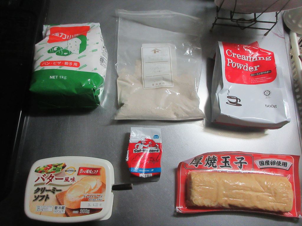 本日お友達との誕生日会だったのですがその主役の体調が優れずに・・・延期 ここ最近体調を優れない事が多く心配しているのですが・・・大丈夫なのでしょうか・・・ ま気持ちを入れ替えてこれらの食材達で Let's cooking! まずは ドライイースト2.5gと砂糖5gをぬるま湯100gに入れ 予備発酵イースト作り お次はタッパに 強力粉200g、全粒粉50g、塩、クリーミーパウダー、ぬるま湯 予備発酵イーストを流し入れ カードで混ぜ混ぜ 混ぜ混ぜし粉っぽい所が無くなったら 台に移し・・・捏ね捏ね6分 バター風を加え・・・捏ね捏ね6分 表面がつるんとしたら 一次発酵開始・終了後 生地君が成長してくれたので 台に移し・・・二分割にし 濡れ布巾を掛けベンチタイム10分後 生地を成形し型に入れ 二次発酵開始・終了後 再び生地君が成長してくれたので 220℃で予熱したオーブンで200℃27分焼き焼き すると いま・・・さん・・・ですね・・・ これを冷ましている間にやる事と言えば・・・ この業スーで購入した 「厚焼玉子」を温めてからカットする事・・・だけ まずは 麒麟淡麗生で乾杯! 週末休みの午前中早くから自宅で飲む麒麟淡麗生マジ、格別ですね♪ 出来上がったおつまみは これ 「厚焼玉子サンド」 そのお味は うん、うん メチャ・・・旨い♪ 「京風だし巻」も美味しかったですが個人的には・・・こちらの方が好き♪ だ・か・ら 「まる」の冷飲み始めちゃうんだな(^^; では、では