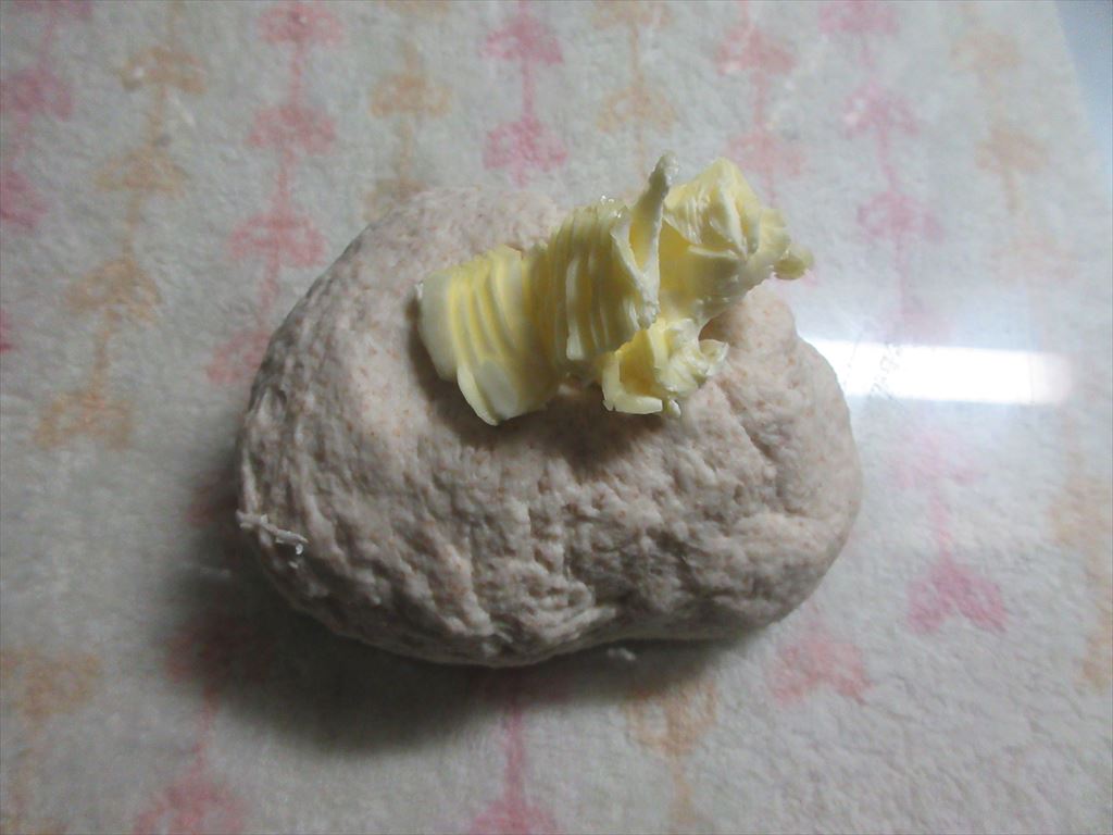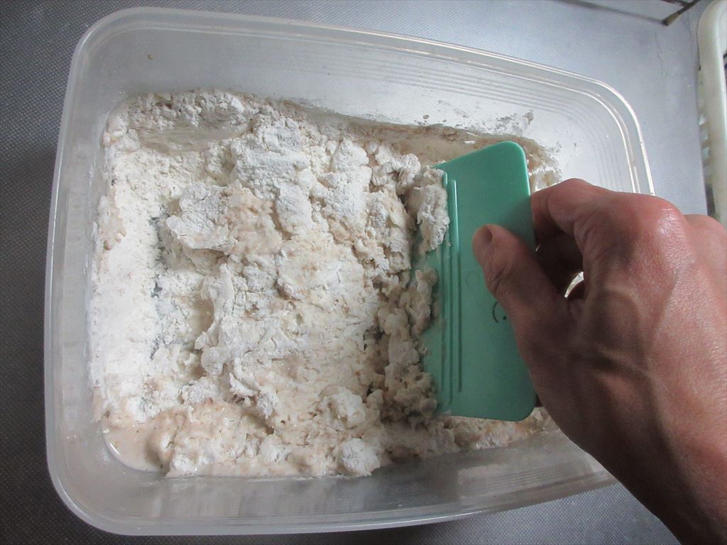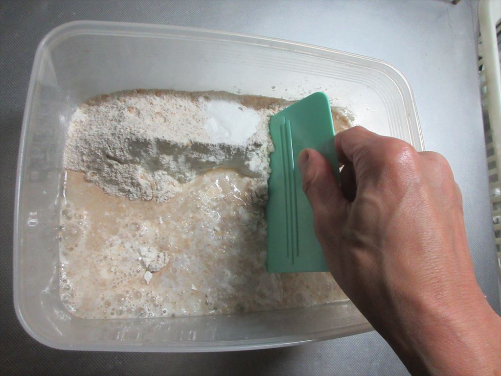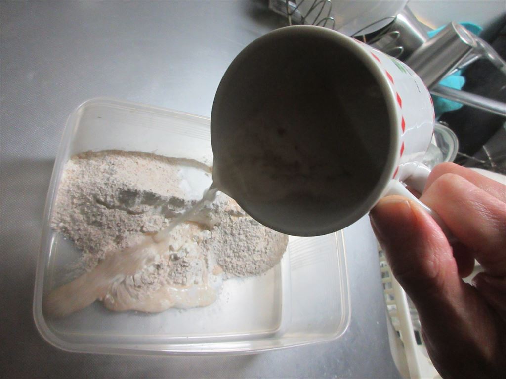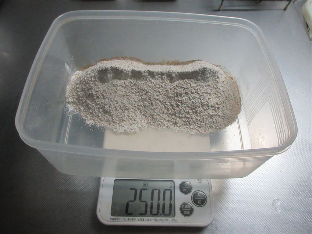 強力粉200g、全粒粉50g、クリーミーパウダー、塩、ぬるま湯