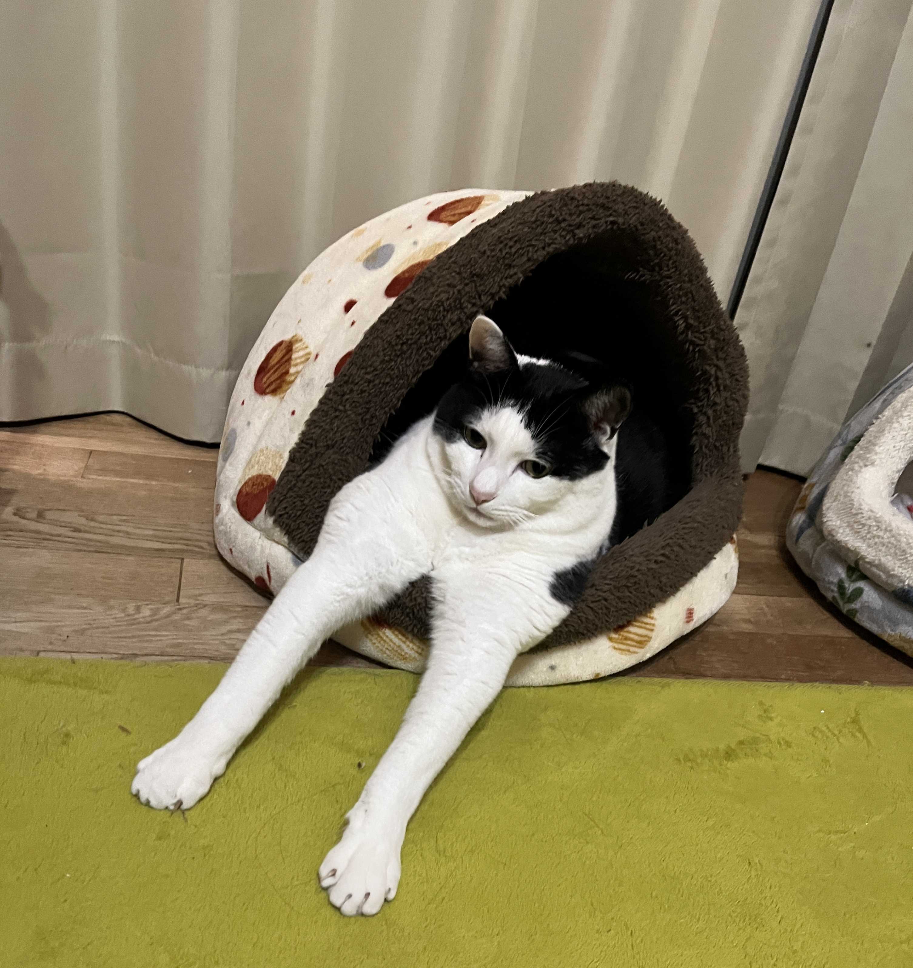 夕方、てるが目覚めたところ。 ノビルゼー。 うん、手がノビノビだね。いいね。 先…