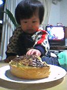 今日はお誕生日でした。ついに一歳です!元気に育ってよかった。誕生日プレゼントとしてバギーを買いました。特売1980円。安すぎ??でも、結構使い勝手よさそうです。ゆうごにプレゼントってか私にプレゼントかな・・今月出来るようになったこと。1.たっち。下が柔らかく、倒れても大丈夫なところ限定。かなりの慎重派・・でもすごく得意そうです。2・「ぱちぱち」というと手を叩いてくれます。3.完全に断乳。4.自分でミルクを飲むようになった。(これまでは絶対自分で哺乳瓶をもとうとしなかった)5.大人と同じ硬さのご飯を食べるようになった。夕ご飯はみょうさんのページを参考にグラタンを作りました。マカロニを手づかみでわしわし食べてました。食後にはなんちゃってチョコバナナケーキ。炊飯器で簡単に作りました。上に薄く塗ったチョコレートがおいしかったらしく、指ですくって大人みたくつまみぐいしてました。