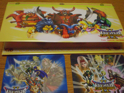 こんばんは 今日は、朝から雨でしたさて 本日 お宝GETキャンペーンなるものが 始まりましたね ふく宅から 一番近い イオンは・・・・。有料道路を2箇所 通り・・・・。 片道 一時間 朝一は 無理 しかも 昨日 学校で、ふく娘が足を捻挫 そのため 学校へは 送迎が必要 さらに 夕方 病院ということで もういいや・・・・。 とあきらめていたところ 仕事から帰った 旦那が「イオン 行くか」と 夕食後 3人で イオンへ ゲセン到着 ドラクエ2台一台は 親子連れが プレー中 もう一台は 空いてるよーー。 で 早速 両替 シールまで 長いのかなー。 と思っていたら・・・・。なんと 12枚目で 当たりシールGET 次は 黒かも~なんてのは 甘い 甘いですぜ 旦那 出ない・・・。出ない 20数枚 はまり やっと出た 黒は 当たりで やめれば よかった。 でも これって 次のシールが近いってことかも 続行と思ったところへ 旦那 登場 当たりシールを見て 「当たりでたあ~よかったね さあ 帰ろう」 まだ 来て10分くらいということで 強制連行 本日の収穫は カードケース一個、そろばんですた ポチっと お願いします