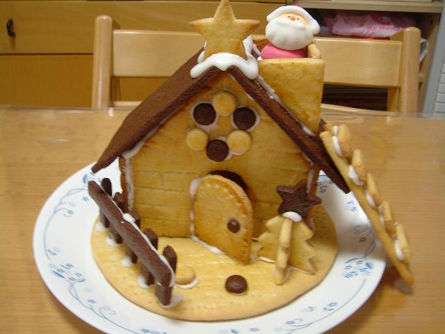 昨日の続き、やっと完成しましたUPしてもいいものかうーんま、こんな感じのが出来たよ~ってことで見てくださいな~んか微妙な感じですが…何が違うかって、全体にもっと焼き色をつけた方がよかったのかも。170℃でちゃんと焼いたのになぁ。家の壁は竹串で模様をつけるんですが、娘がやったので少々荒いかな。削りすぎて割れるのが怖かったし。ま、コレしか家にないのでw「クッキーのおうちができた~」と大喜びでしたいつ食べていいの?、ってわくわくしていますうーん。いつ食べたらいいんだろう…。