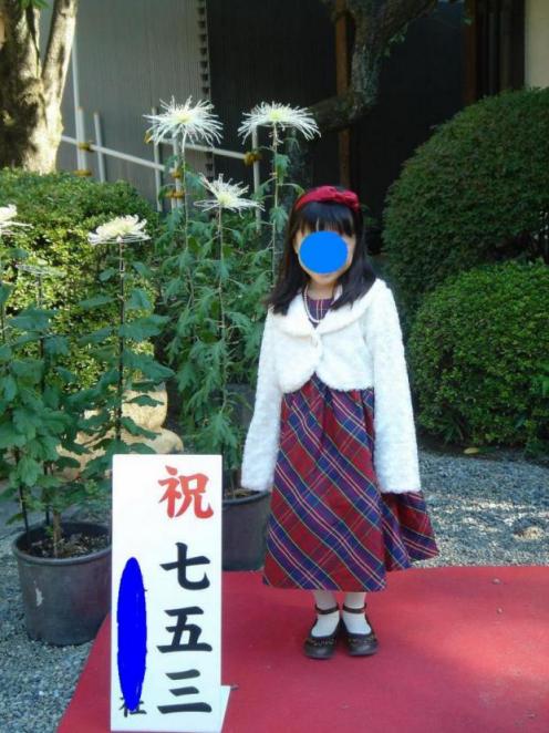 (過去日記です)似た内容なので、マイミクさんはスルーしてください今日、七五三のお参りに行ってきました朝早めに家を出て、10時前に神社に到着。意外とたくさん人がいてびっくり。祝日で大安…しかも、雲ひとつない晴れでした七五三当日、13日とか14日だったら…もっとすごいかも着ていくものはかなり悩んだものの、結局着物はやめてドレスに。お下がりですごい豪華な着物があったんですが、かなり大きくて引きずりそうだったんですちびっ子の娘は、振袖のたもと&裾を引きずってダメにしちゃいそうで…。事前にスタジオ○○○で写真だけ撮りました周りの女の子を見てみたら、着物とワンピースと、半々くらいな感じ。歩きやすいし、やっぱりドレスにしてよかったと思います着物で、転んでる子を2人ほど見かけました歩きにくいんだろうなぁ…。砂利とか、砂の道だし。車で行って、歩くのは本殿までの5分程度なんですけどね。Gymboreeの2010Holidayライン、Plaid Dress (サイズ7)とカチューシャノースリーブは寒いかと思って、ボレロを着せました。インはヒートテックの長袖。ボレロは130cmしかなかったんだけど、大きすぎ…。こちらはタグが付いたままで試着。くるぶし位の着丈。もともと少し長めかな?ジャストはサイズ6だと思いますが、インに何か一枚着せる場合を考えて大きめにしました。7歳5ヶ月、身長113cmくらい(※4月の計測)6歳の子の体格かな~。結構小さめです。ドレスはシルクの割に(シルクだから?)しわしわ状態で届き、なんだかなぁな感じでしたが、着せたら裾にチュールが入っていて、ふんわりしてましたお参りの後、みんなで食事に行って帰ってきました。今日は散々お姫様扱いで、ご機嫌でした~