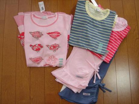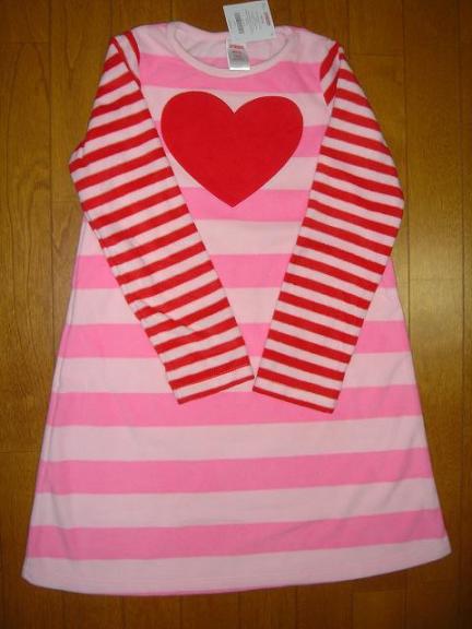 Gymboreeのパジャマ便(笑)が到着しました。今回は発送から4日で到着 早っ。Heart Microfleece Pajama Gownこれ、UPされた日の夜に気づいて、オーダーしようと思ったらなぜかサイト自体が見られなくなり…見られるようになったら、全サイズ売り切れたまーにあるんですよね。GYM側がサイトいじってる時間?(いつもUPされる時間帯には、PCついてるのに!)で、今度復活したらオーダーしちゃおう!って思ってたら、全サイズ見事に復活してましたJingle Dealsで、均一価格でお買得。他のパジャマもほぼ全サイズ復活してました。珍しい。前に買ったGingerbread Pajama Gownと比べて、なーんか着丈が短いんですよね。比べたのがこれ(全てMサイズ)ハート→70cm、ジンジャーブレッド→79cmネコ(Snowflake Kitty Pajama Gown)なんて、83cmもあるんですよ?これってタグミス?それとも単にデザインの差なのかしら袖丈はなぜか、ハートの方が少し長いです…ということは、全部Mであってるどうせパジャマの上からスリーパーとして着せるので、多少の差は問題ないんですけどね。寝相のいいお子さんなら、肌着の上にネグリジェとして着せられるかも。続いて私の大人用~Mom Polka Dot Microfleece Two-Piece Pajama SetSadultは相当大きい(男女兼用サイズ??)と思ったので、サイズに悩みましたが「mom」って書いてあるし、少しは小さめだよね?サイズチャートも見て、SとMをオーダー。届いてみたら…大きいーーーーSで、日本のMサイズくらい。広げてないけど、多分Mが日本のLサイズ相当かと…。ああ、XSにしておけば良かった!生地はかなりしっかりしたフリースで、良かったです。まだ着てないけど、股下が相当長そうなので折るしかないかも。。他には、買い損なったスカート、ヘアアクセなどをちょこっと。これで年内は買い納めにしたいけど、年末のRed Ballon Saleをスルーできるかな…。