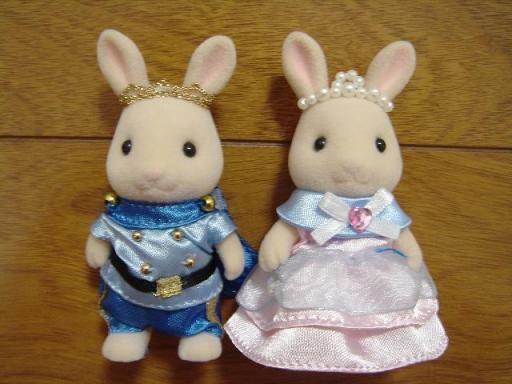 毎日夏休みも、あと残りわずか42日間、本当に長かった…去年までの楽チン幼稚園生活が懐かしいです。で、タイトルの通り「シルバニアファミリー」です。娘も私も好きで結構買い集めてました久しぶりに娘に遊ばせたところ、「もっとお人形が欲しい~」ということで、新しいのを下ろしました。(…ってこっそり買ってあるんじゃん)おもちゃ王国限定発売の「おもちゃ王国オリジナルペアセット」王子様とお姫様のみるくさぎ(だったかな?古すぎて忘れた…)確か幼稚園に入る前位に、おもちゃ王国に行った時にこっそり買っておいたもの。って3年前じゃあ…。シルバニアは着せ替えが出来るんですが、この洋服と小物は売ってないので。うさぎ、っていうのもポイント高いよね(私がうさぎ好きなので)今でも、各地のおもちゃ王国で販売中。こちらは「シマネコファミリー」今はあんまり見かけません。どんどん新しいファミリーが発売されるので、最近のは全然分からずうさぎよりも、ネコ好きな娘のツボだったようです。お父さん、お母さん、女の子、男の子、赤ちゃん。ファミリー、結構多いなぁ(笑)久々にHPを見たら、シカだかぞうだか、変わったシリーズが発売中。他にもこまごました小物や、ハウス系もたくさんあるんですが、出してくると散らかって大変なことになるので、この辺で。
