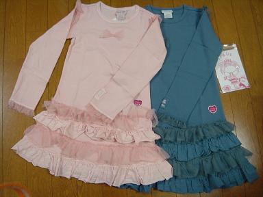 遅くなりましたが...naaの共同購入に参加させていただき、こちらのお洋服が到着していますjie jie netting trimmed ruffled skirt dress左 amore サイズ6右 daybreak サイズ7この裾のフリル、かわいいです袖口にもちょこっと付いてます。Holidayラインにしては少し薄手の生地だったので、重ね着か春先向けかな。胸元のリボンがなぜか娘には不評だったのですが、重ね着するのでOKですブルーの方が人気カラーで、在庫が少なくて欲しい6がなし。で、5か7かで迷って大きい方にしたら、すっごーーく大きかったです。先物にするか、もったいないけどお嫁に出すか悩みますそしてこちらまで...いただいてしまいました見るなり娘に「かわいいー!」と速攻持っていかれましたお気遣いいただき、すみません主催者さま、今回は大変お世話になりありがとうございましたかわいいドレスを買えてとってもうれしかったです