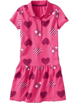 Old Navyの共同購入に参加させていただき、一点だけお願いしました。(主催者さま、お世話になりました~ありがとうございました)Girls Jersey Polo Dressesサイズ S(6~7歳)本当はこちらの色と迷ったのですがピンクがいい!!と娘に却下されましたどうせ汚すから、濃い色の方がいいなぁと母は思ってたのに…。画像からすっごいピンク色だと思ったんですが、実際はそんなに派手派手なピンクではなくて少し落ち着いた感じの色で一安心。これなら学校にも実物はこちらです~(相変わらず画像悪いです)生地はポロシャツと同じだと思ってましたが、もっと薄手。パリッとサラっとした、Tシャツ生地の感じです。これならジンボリーのポロワンピよりも涼しいわまだ試着させてませんが、着たらスカート部分が少しふわっとなりそう手持ちワンピと合わせたら同じ位だったので、ジャストサイズだったと思います。えりはポロシャツ素材。胸元のボタンあたり、ハートがちゃんと柄合わせしてあるーそれから、こんな素敵なものをいただいちゃいましたなんだかお世話になったのに、申し訳ないです色々とありがとうございました