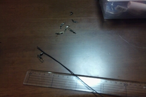 なんとか釣りたい今日この頃・・・・何かいい情報がないかと ネットを徘徊してました。すると アラバマリグなるものが 爆釣らしい!(でも高いです)これなら作れそうだし・・・・やってみよう!手持ちの針金で作ります。真ん中の棒は10センチです。アジングならこれくらいと どこかに書いてありました。はいあっという間にできました。意外と簡単。(釣るほうが難しい?)これに ワーム類を取り付けて・・・・完成!これで明日すぐにテストができそうです!にほんブログ村 家族ブログにほんブログ村 家庭・家族にほんブログ村 ハンドメイドブログにほんブログ村 木工にほんブログ村 車 修理・整備にほんブログ村 自作PCにほんブログ村