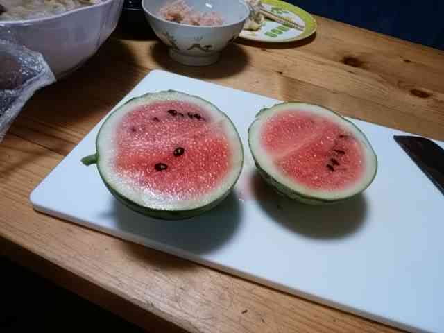 冷蔵庫で冷やして お風呂上りに切ってみました。