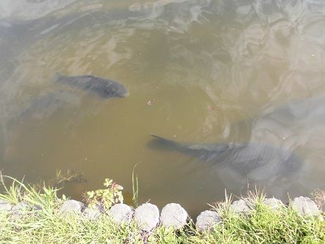 いつものごとく鯉と話してたら、大学生風男子2人が通りかかり、