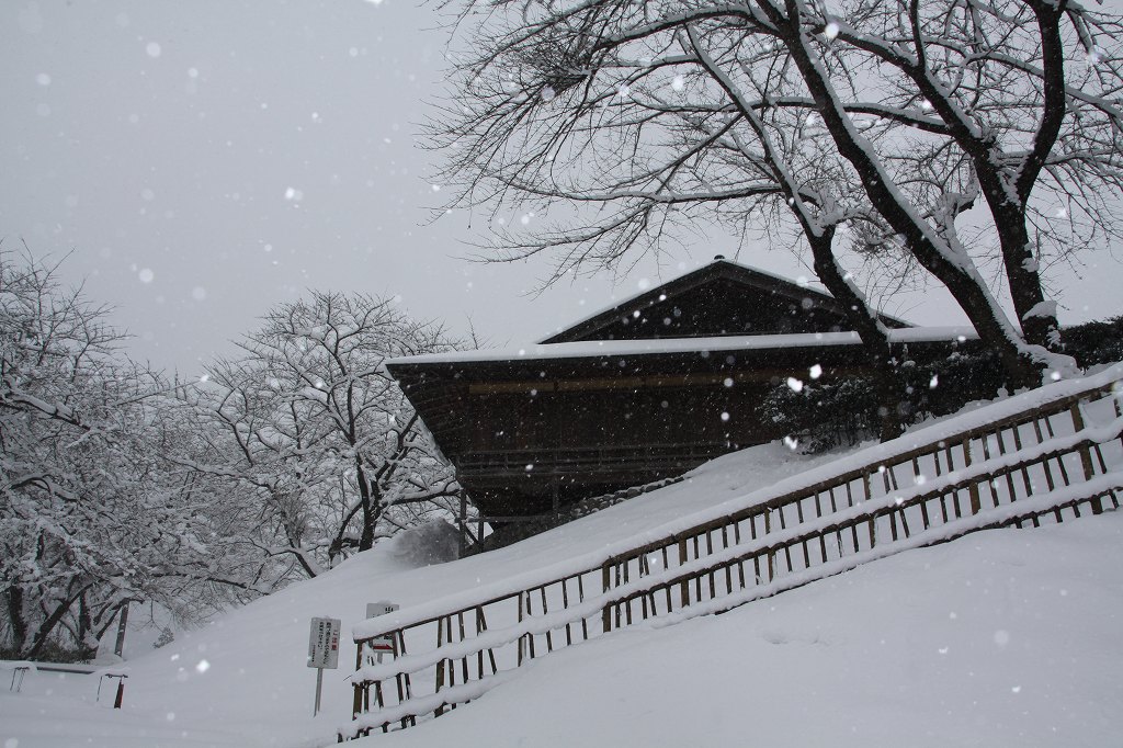 「ゆふ陽」 もうすこし 心をやしなへば この あかいゆう陽を のこらず うれしむことができるだろう 八木重吉 (言葉より)♪ また君に恋してる ♪ 土曜日、山寺に着いた時、下の写真のような雪降り・・・・往復2時間の石段登り、行くか行くまいか、迷った迷った(汗)