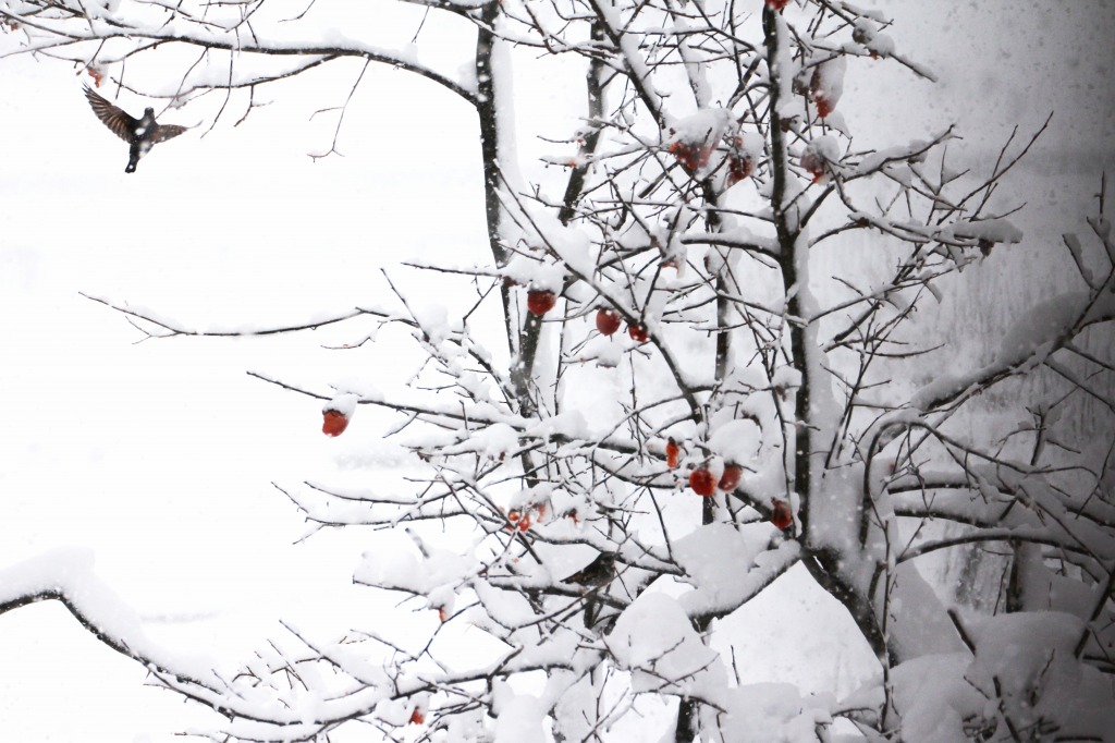 今日は珍しく秋田もよく晴れてる。このぶんなら3年4ヶ月ぶりと云う皆既月食が見られるかも?国立天文台によると、月食の各現象は全国同じ時刻、16時40分に始まり、17時54分に終わるという。さて、何処で待ち構えたら好いだろうかね~~これは大雪の日、二階の窓から見えた出来事、お食事にやって来た柿喰う恵子ちゃんご夫婦(笑)