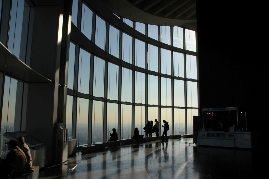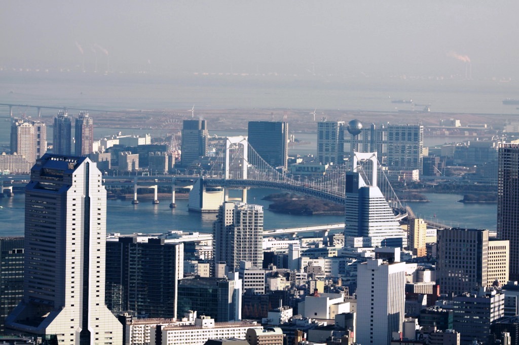 海抜270m、柔らかな風に吹かれながら眺める東京の街は素敵なアートだった~~雲ひとつ無い青空に富士山の雄姿を期待したけど残念な結果に・・・ごらんのように地平線は都会のスモッグがびっしりでした。風が無いと言うのも眺め的には好くないんだね~~ただ此処に上るには手荷物厳禁で、カメラバックはもちろんのこと、ウエストバックやハンドバックさえもコインローカー預かりとなるのでした。魚眼レンズをポケットに入れておくべきだった(汗)