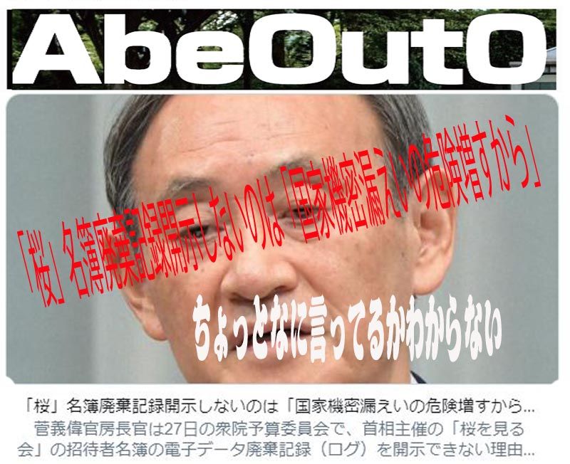 事あるごとに「責任」というワードを強調的に用いながら、一度の例外もなく「責任」を取った試しのないアベ首相周辺の「無責任」ぶりは見るに耐えない。菅官房長官も「私が責任者」と言いながら結局、官僚を処分して自己保身。責任は自分にあると言いながら全て部下に詰め腹を切らせる。醜い政権だ。