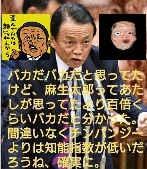 バ○首相は山口県民と神奈川県民の一部拝金主義者たちの票で選ばれたバ○であって、言い換えれば投票すらしないバ○によって再選を繰り返しているバ○の親玉。選ぶバ○と選びもしないバ○はどちらの罪が重いだろうか?日本人として日本の運営を任せる人を選ぶ行為を放棄してはいけない。それでもバ○自民党に投票する人たちがいる。この現実を乗り越えないと話にならんのですよ。