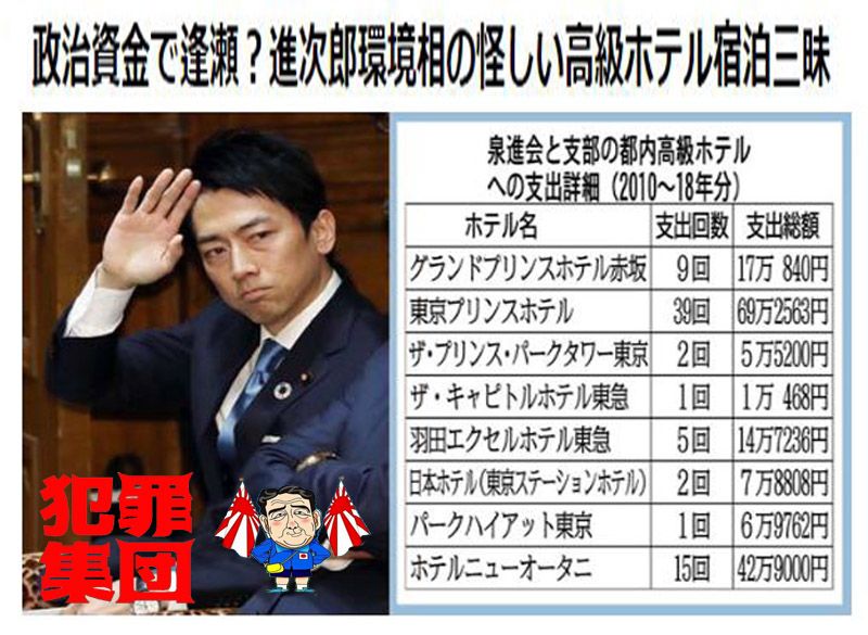 ワイドショーが俳優の不倫についてギャーギャー騒いでいるがどうでもいい。・政治資金で有権者を饗応(総理)・有権者にメロン、イクラ(経産大臣)・カジノ利権でワイロ貰って逮捕(副大臣)・公職選挙法違反、原資は総理から貰った一億五千万円(法務大臣と妻)・政治資金で一泊10万円のホテルに泊まって人妻と不倫(環境大臣)