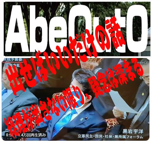 官僚や大臣の答弁がアベシンゾウ化している。分からない、答えない、 調べない、調査中、個人情報、セキュリティ、等々の嘘、ゴマカシ。官僚もマスコミも検察もアベ化している。この国に民主主義はおろか未来は真っ黒クロスケ!結局、自民党に投票している連中は、やっぱり金次第という印象しかない。桜を見る会、菅原経産相、河井夫婦、経団連、マスメディアの一連の流れを見ていると、そう思わない方がおかしい。