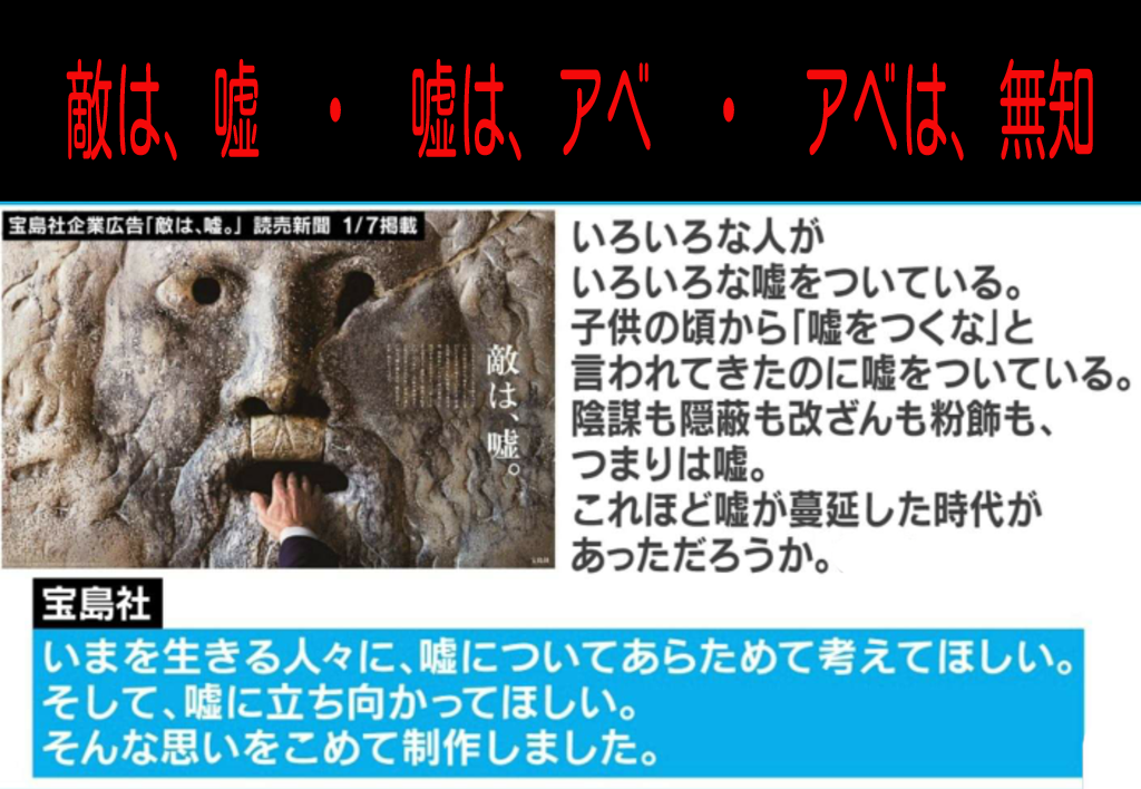かつて「バカ」「アホ」と言うことも書くことにもかなりの抵抗があっのですが、このところ「アホ」の使用には何のわだかまりもなくなり、多発しています。で、気がつくと、「バカ」への抵抗も薄れています。で、いつが転機だったのかと考えてみたところ、何故かアベ政権の期間と一致するのです。汚職やり放題の現状に、恐怖を感じない国民が多いことこそ恐怖ですね。これも一種のファシズム教育の成果でしょう。