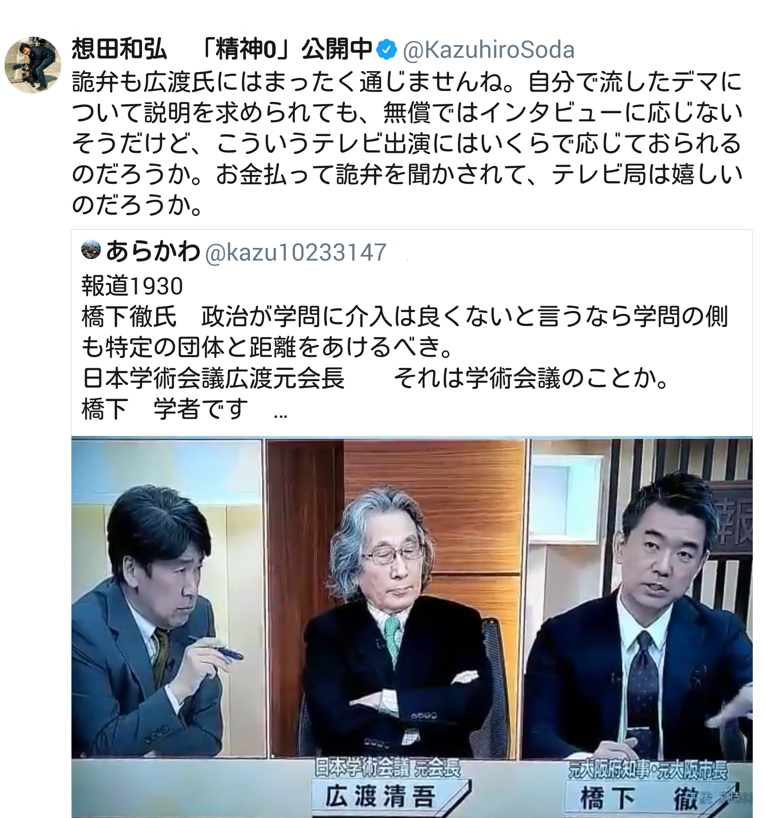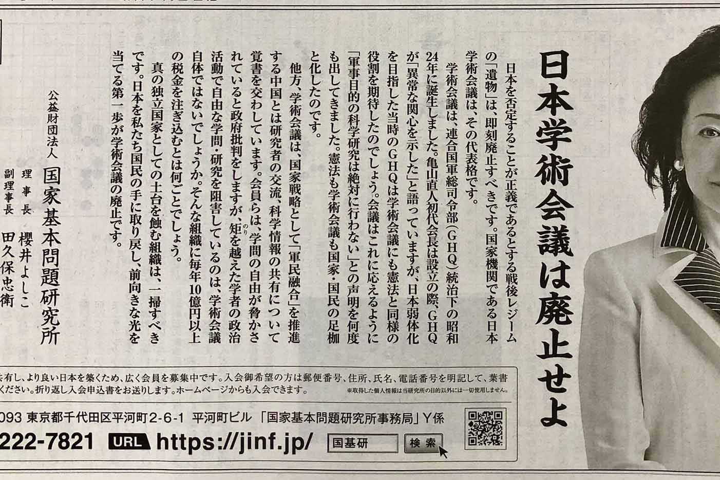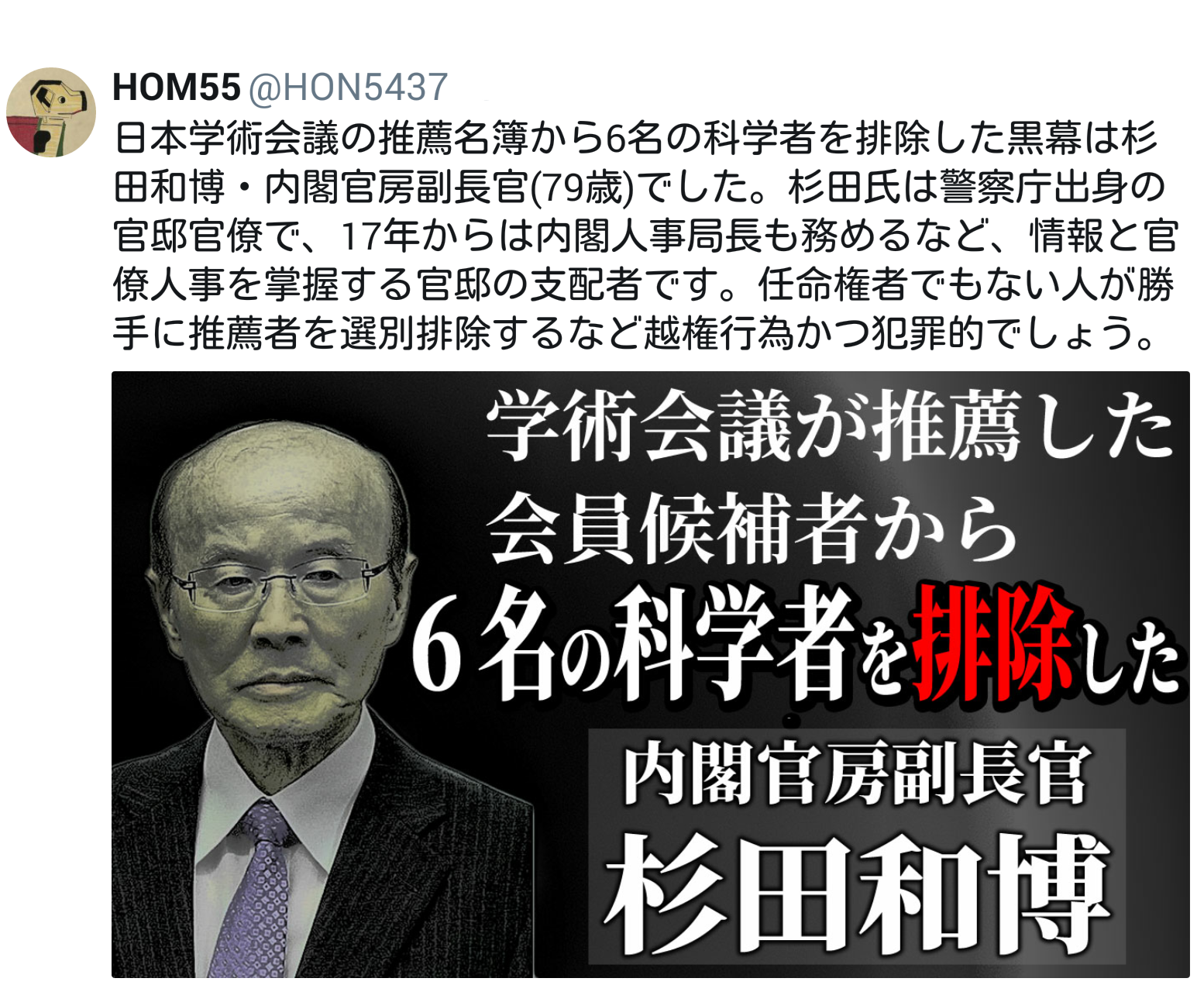 「真の独立国家としての土台を蝕む組織」って「日本学術会議」ではなく「日本会議」のことだろ。一掃すべきは日本会議だ。真の独立というならアメリカ隷属をやめることだ。アメリカ隷属を是とする日本会議に「真の独立」などという資格はない。