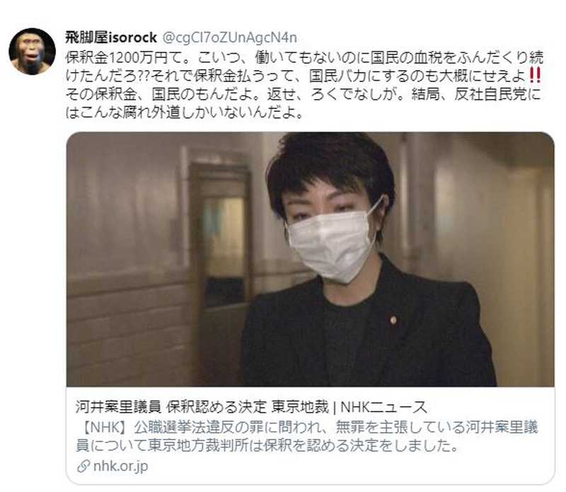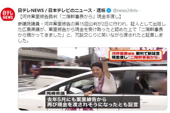 自分の妻の裁判に証人として出廷してるのに、妻の為の証言を一切する事もなく、自身の保身しか頭にない様な最低の輩。こんな輩を法務大臣なんかに任命したボンクラは何処のどいつや。