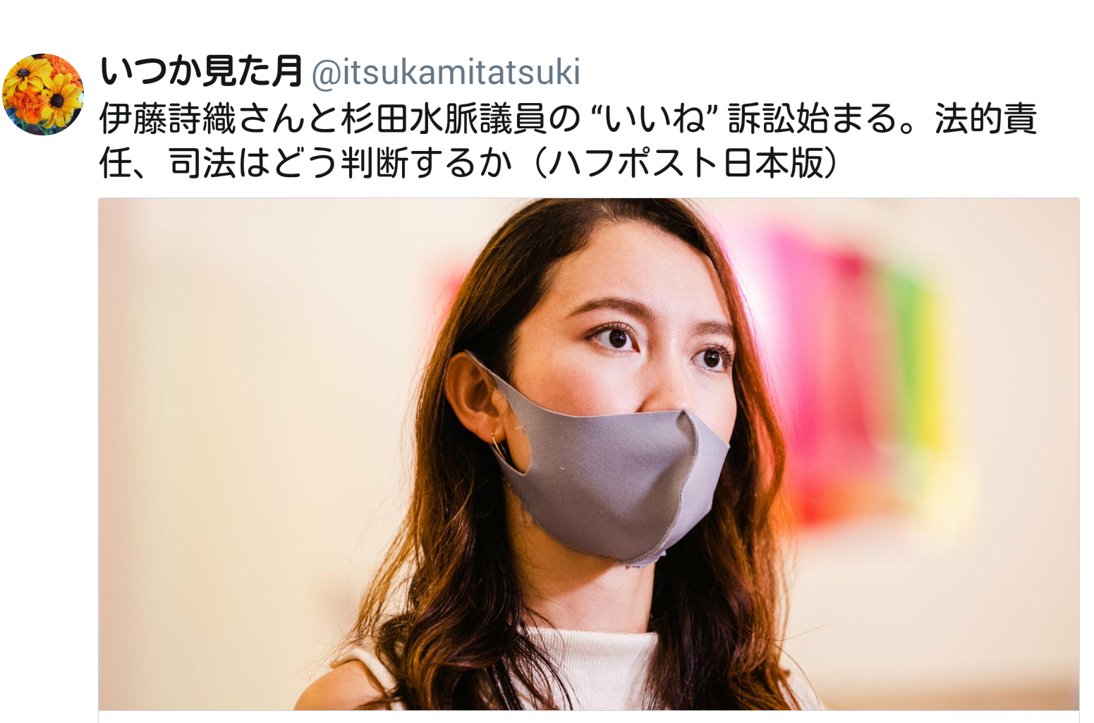ジャーナリスト伊藤詩織 さんが、自身を誹謗中傷する投稿に「いいね」を押され名誉を侵害されたとして、自民党の杉田水脈 衆院議員に慰謝料を求めた訴訟。伊藤さんは「インタビューやツイッターで杉田氏が発言した批判的な言葉もセカンドレイプとなる発言です」と述べた。